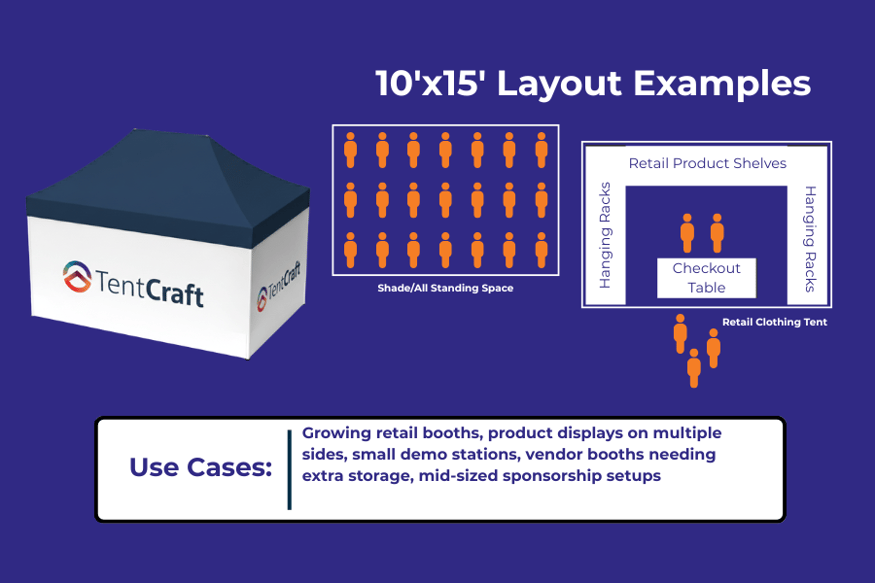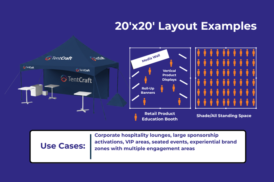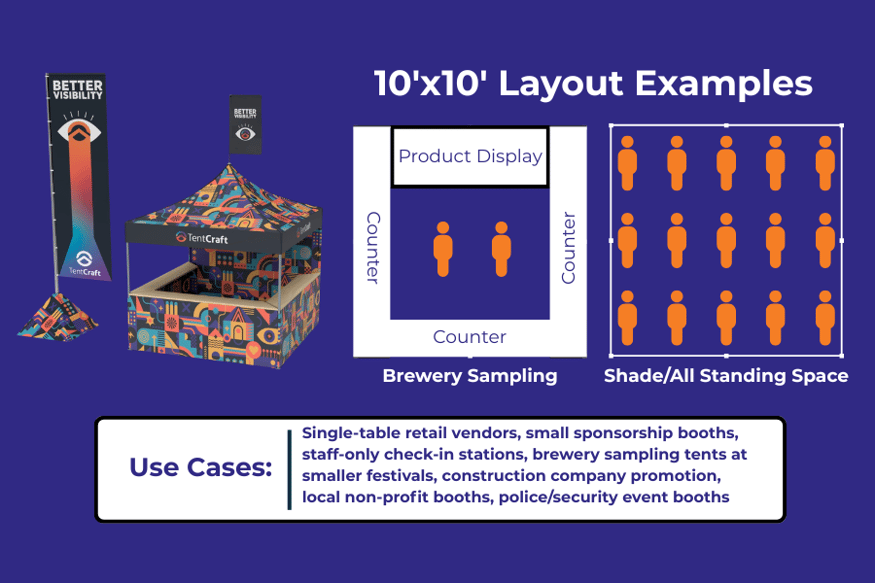 If event attendees will be stepping under your canopy, space needs increase quickly. You’ll want room for guests to browse, ask questions, and move naturally without feeling crowded.