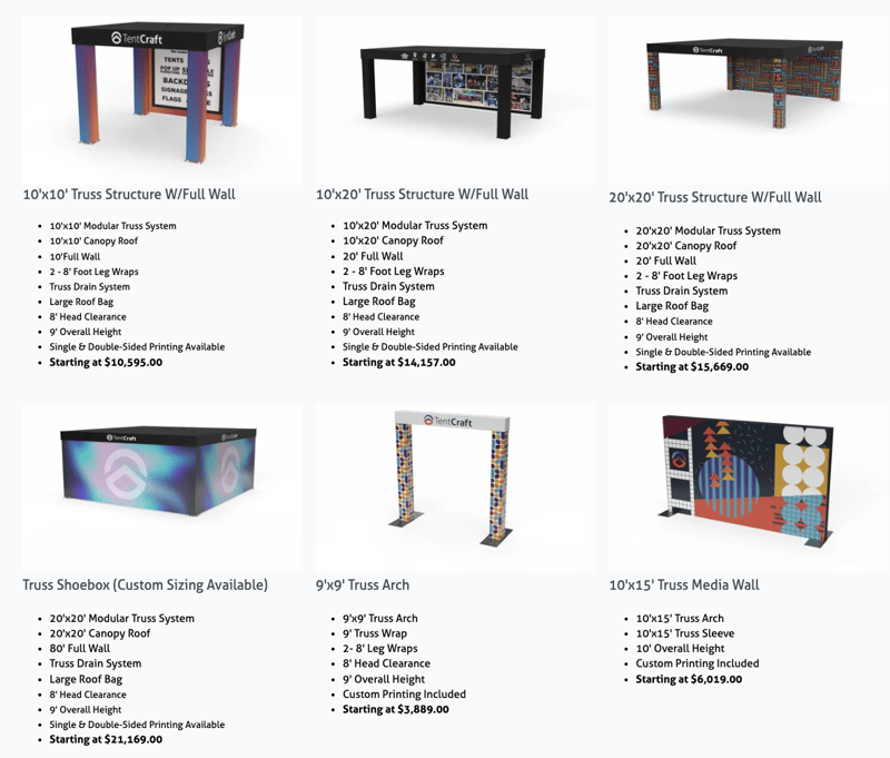 You Want the "TentCraft Hybrid Model" Rental Perks - With our program, you rent the hardware, but buy the custom soft goods and branded signage. This means you get a professional, branded look for a fraction of the cost, and you get to keep the custom-printed elements to use again later.